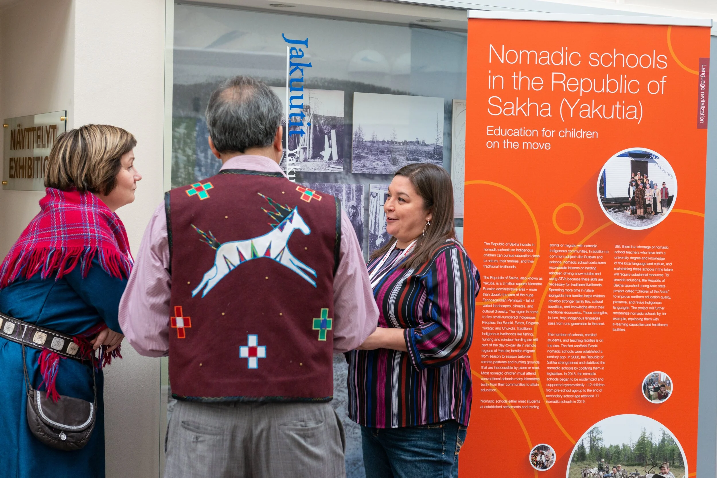 The Ságastallamin Exhibition included 17 roll-ups, a 4-meter-long map, and a Spotify playlist of songs in Arctic Indigenous languages. Click the buttons below to learn more.